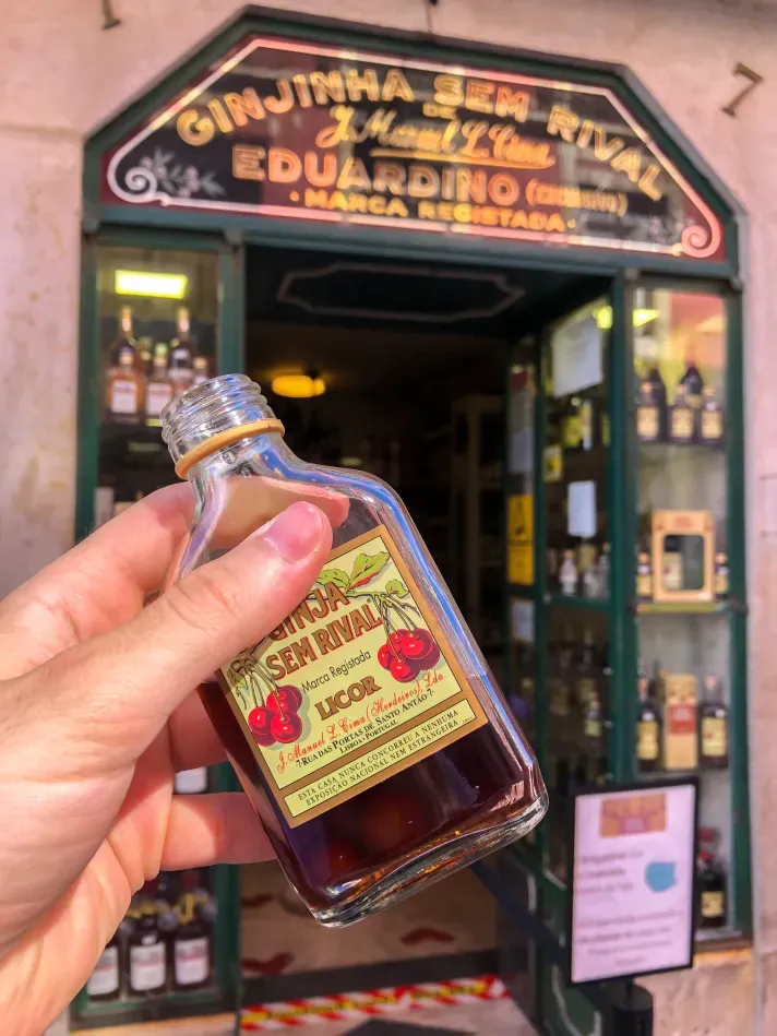 E poi c’è la ginjinha, un liquore alla ciliegia che si sorseggia nei piccoli bar del centro. Dolce, intenso, leggermente alcolico: il modo migliore per chiudere una giornata tra le stradine illuminate da luci calde.
